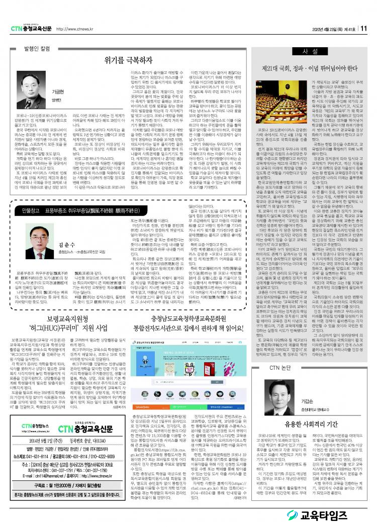 [ÃæÃ»±³À°½Å¹® = È«À¯¼± ±âÀÚ] [CTN]È«À¯¼± ±âÀÚ = ÃæÃ»Å¾´º½º´Â 23ÀÏ, Âü±³À°À» ¼±µµÇÏ´Â CTNÃæÃ»±³À°½Å¹® 41È£¸¦ ¹ßÇàÇß´Ù.