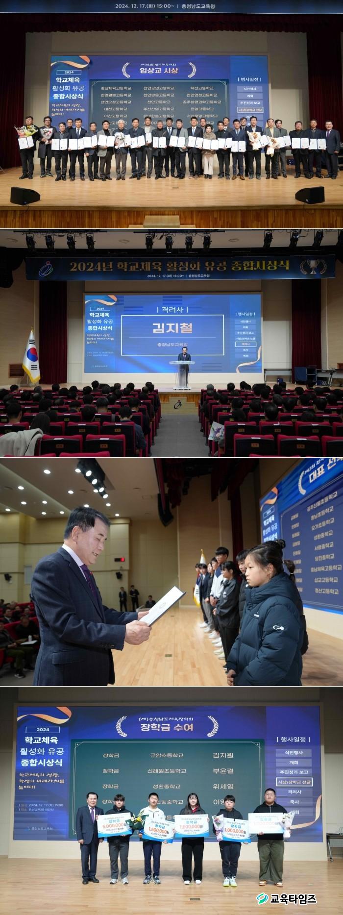 À̹ø Çà»ç´Â 2024³â ¼±ÁøÇüÇб³¿îµ¿ºÎ À°¼º, Çб³½ºÆ÷Ã÷Ŭ·´ Áöµµ, »ýÁ¸¼ö¿µ±³À° ÇѸ¶´ç ¿î¿µ, Àü±¹Á¾ÇÕüÀ°´ëȸ À¯°ø µî °¢Á¾ Ãæ³² Çб³Ã¼À° Ȱ¼ºÈ¿¡ ±â¿©ÇÑ ±â°ü°ú °³ÀÎÀ» ½Ã»óÇϰí, ¹Ì·¡ ²Þ³ª¹« ¿ì¼ö¼±¼ö µî¿¡°Ô ÀåÇбÝÀ» Áö±ÞÇÏ´Â ¼ø¼·Î ÁøÇàµÇ¾ú´Ù.