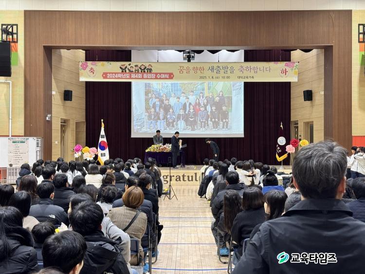 [±³À°Å¸ÀÓÁî/Ãæ³²±³À°] °¡µÎÈ£ ±âÀÚ = ´ë´öÃʵîÇб³(±³Àå ¹®¼º¸¸)´Â Áö³ 8ÀÏ Á¦4ȸ Á¹¾÷½Ä ¼ö¿©½ÄÀ» ÁøÇàÇß´Ù. 2021³â °³±³ ÀÌÈÄ ´ë´öÃʵîÇб³´Â Áö¿ªÀÇ ´ëÇ¥ÀûÀÎ ±³À°±â°üÀ¸·Î ÀÚ¸® Àâ¾ÒÀ¸¸ç, ¿ÃÇØ´Â 89¸íÀÇ Á¹¾÷»ýµéÀÌ Á¹¾÷½ÄÀÇ ÁÖÀΰøÀÌ µÇ¾ú´Ù.
