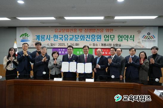 [±³À°Å¸ÀÓÁî/»çȸ] °¡µÎÈ£ ±âÀÚ = Çѱ¹À¯±³¹®ÈÁøÈï¿ø(¿øÀå Á¤Àç±Ù, ÀÌÇÏ 'ÇÑÀ¯Áø')°ú °è·æ½Ã(½ÃÀå ÀÌÀÀ¿ì)´Â 14ÀÏ °è·æ½Ãû »óȲ½Ç¿¡¼ À¯±³¹®È ÁøÈï ¹× Áö¿ª »ó»ý¹ßÀü¿¡ °üÇÑ ¾÷¹«Çù¾àÀ» ü°áÇß´Ù.