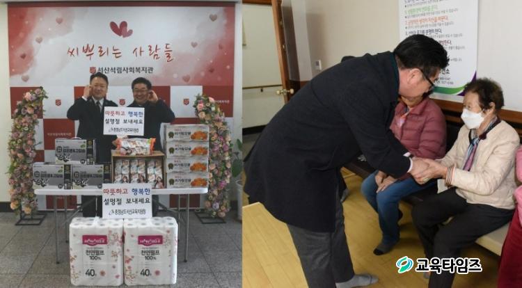 [±³À°Å¸ÀÓÁî/Ãæ³²±³À°] ÇѼºÁø ±âÀÚ = ÃæÃ»³²µµ¼»ê±³À°Áö¿øÃ»(±³À°Àå ¼º±âµ¿)Àº ¼³ ¸íÀýÀ» ¾ÕµÐ 23ÀÏ ¼»ê¼®¸²»çȸº¹Áö°üÀ» ¹æ¹®ÇØ ¾î¸£½Åµé°ú ¿ÂÁ¤À» ³ª´©´Â ¶æ±íÀº ½Ã°£À» °¡Á³´Ù.