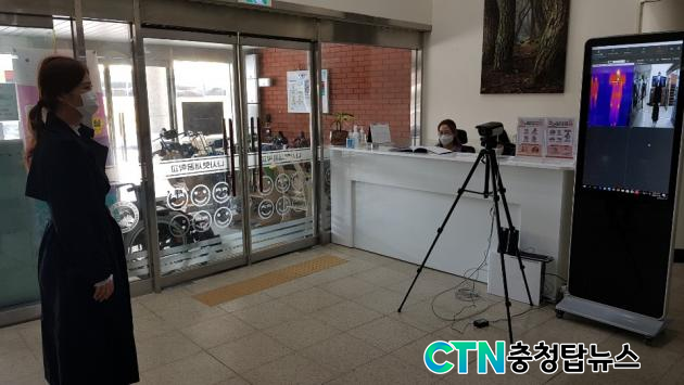 Çб³ ³» ¸ðµç ÃâÀÔÀÚ´Â 1Ãþ ·Îºñ·Î ÃâÀÔÇϰí, ¿È»ó Ä«¸Þ¶ó¸¦ ÅëÇØ ÃøÁ¤µÈ ü¿ÂÀº Ű¿À½ºÅ©¿Í ¿¬µ¿µÇ¾î ½Ç½Ã°£À¸·Î È®ÀÎÀÌ °¡´ÉÇÏ´Ù. Á¤È®ÇÑ ÃøÁ¤À» À§ÇØ ¾Õ µÚ »ç¶÷ °£ ÀûÁ¤°Å¸®¸¦ À¯ÁöÇϰí ü¿Â ÃøÁ¤À» À§ÇÑ À§Ä¡¼±¿¡ ¾à 2Ãʰ£ ¼ ÀÖµµ·Ï Çß´Ù.