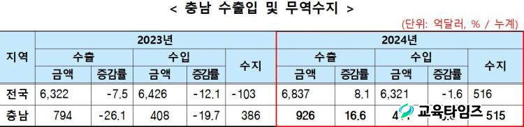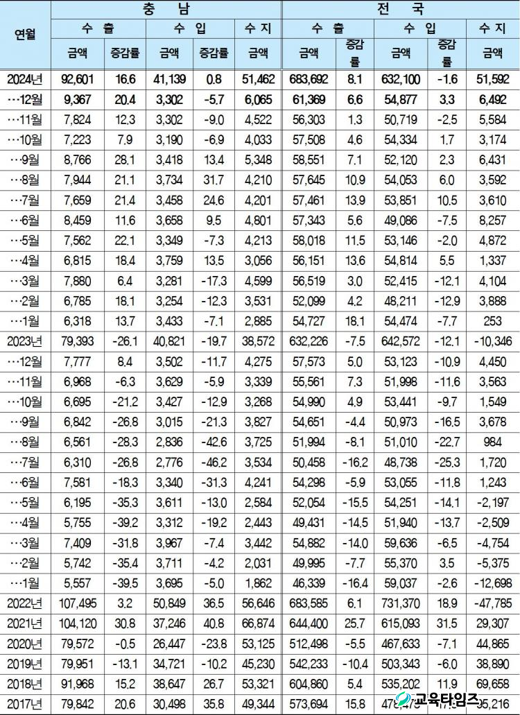 | ¿¬µµº° ¼öÃâ․ÀÔ ÇöȲ (2024. 12¿ù ±âÁØ) /ÀÚ·á=Ãæ³²µµ Á¦°ø |