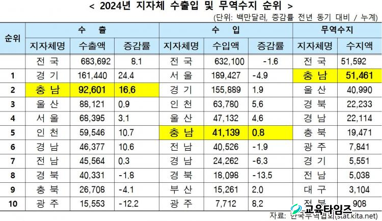 | 2024³â ÁöÀÚü ¼öÃâÀÔ ¹× ¹«¿ª¼öÁö ¼øÀ§ /ÀÚ·á=Ãæ³²µµ Á¦°ø |