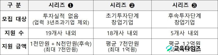 ƯÈ÷ µ¿ »ç¾÷Àº â¾÷±â¾÷ÀÇ ¾÷·ÂÀÌ ¾Æ´Ñ ÅõÀÚ ´Ü°è¸¦ ±âÁØÀ¸·Î ½Ã¸®Áî 1ºÎÅÍ ½Ã¸®Áî 3±îÁö ¸ðÁý ´ë»óÀ» ±¸ºÐÇÏ°í ¸ÂÃãÇüÀ¸·Î ÇÁ·Î±×·¥À» Áö¿øÇÑ´Ù´Â Á¡¿¡¼ ±âÁ¸ â¾÷ÆÐŰÁö »ç¾÷°ú Â÷º°ÈµÈ´Ù.
