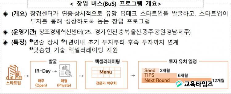 â¾÷-BuS´Â Áö¿ªÀÇ À¯¸Á ½ºÅ¸Æ®¾÷À» ¹ß±¼ÇÏ¿© 3°³¿ù À̳»¿¡ ½Ãµå ÅõÀÚ¸¦, 6°³¿ù À̳»¿¡ TIPS¸¦, 12°³¿ù À̳»¿¡ ÈļÓÅõÀÚ ¿¬°è±îÁö ½Å¼ÓÇÏ°Ô Áö¿øÇÏ´Â °ÍÀ» ¸ñÇ¥·Î ÇÑ´Ù.