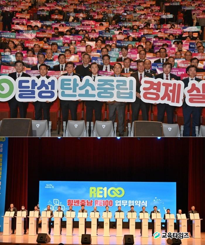 [±³À°Å¸ÀÓÁî/Ãæ³²] °¡µÎÈ£ ±âÀÚ = ź¼ÒÁ߸³°æÁ¦Æ¯º°µµ¸¦ ¼±¾ðÇÏ°í ´ëÇѹα¹ ź¼ÒÁ߸³ ½ÇÇö¿¡ ¾ÕÀå¼°í ÀÖ´Â Ãæ³²µµ°¡ RE100(±â¾÷ »ç¿ë Àü·ÂÀÇ 100%¸¦ Àç»ý¿¡³ÊÁö·Î ÀüȯÇÏ´Â ±¹Á¦ Ä·ÆäÀÎ) È®»êÀ» À§ÇØ °ü·Ã ±â°ü¡¤±â¾÷µé°ú ¼ÕÀ» ¸ÂÀâ¾Ò´Ù.