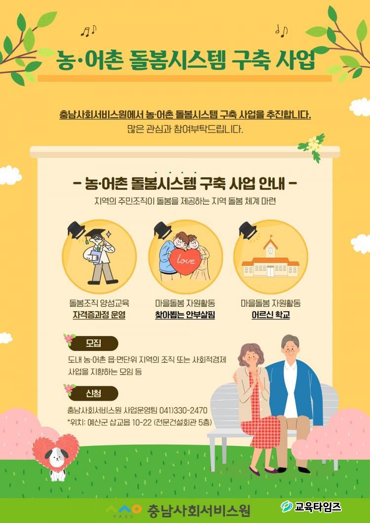 [±³À°Å¸ÀÓÁî/»çȸ] °¡µÎÈ£ ±âÀÚ = ³ó․¾îÃÌ Áö¿ªÀÇ °í·ÉÈ¿Í 1ÀÎ °¡±¸ Áõ°¡·Î ÀÎÇØ µ¹º½ ¼ºñ½ºÀÇ ¼ö¿ä°¡ ±ÞÁõÇϰí ÀÖ´Â °¡¿îµ¥, Ãæ³²»çȸ¼ºñ½º¿ø(¿øÀå ±è¿µ¿Á)Àº ¡®³ó․¾îÃÌ µ¹º½½Ã½ºÅÛ ±¸Ãà »ç¾÷¡¯À» ÅëÇØ ³ó․¾îÃÌ Áö¿ª ÁֹεéÀÇ µ¹º½ »ç°¢Áö´ë¸¦ ÇØ¼ÒÇϰí, µ¹º½¾ÈÀü¸ÁÀ» ±¸ÃàÇÒ °èȹÀ̶ó°í ¹àÇû´Ù.