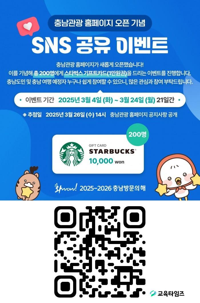 [±³À°Å¸ÀÓÁî/Ãæ³²] °¡µÎÈ£ ±âÀÚ = Ãæ³²µµ´Â ¡®2025¡2026 Ãæ³²¹æ¹®ÀÇ ÇØ¡¯¸¦ ¸Â¾Æ »õ·Ó°Ô °³ÆíÇÑ Ãæ³²°ü±¤ ´©¸®Áý(https://tour.chungnam.go.kr)ÀÇ °ø½Ä °ø°³¸¦ ±â³äÇØ ±¹¹Î Âü¿©Çü »çȸ°ü°è¸Á(SNS) °øÀ¯ À̺¥Æ®¸¦ ÁøÇàÇÑ´Ù°í 7ÀÏ ¹àÇû´Ù.
