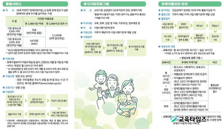 ÀÌ »ç¾÷Àº Àå¾Ö¾Æ °¡Á¤ÀÇ ÀÏ»óÀûÀÎ ¾çÀ°ºÎ´ãÀ» °æ°¨ÇÏ°í º¸È£ÀÚÀÇ »çȸȰµ¿À» µ½±â À§ÇÑ °ÍÀ¸·Î, Áö¿ø ³»¿ëÀº µ¹º½¼ºñ½º¿Í ÈÞ½ÄÁö¿øÇÁ·Î±×·¥ÀÌ´Ù.