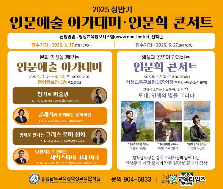 ÃæÃ»³²µµ±³À°Ã»Çлý±³À°¹®È­¿ø, 2025³â »ó¹Ý±â ¡®Àι®¿¹¼ú ¾ÆÄ«µ¥¹Ì¡¯ ¼ö°­»ý ¸ðÁý