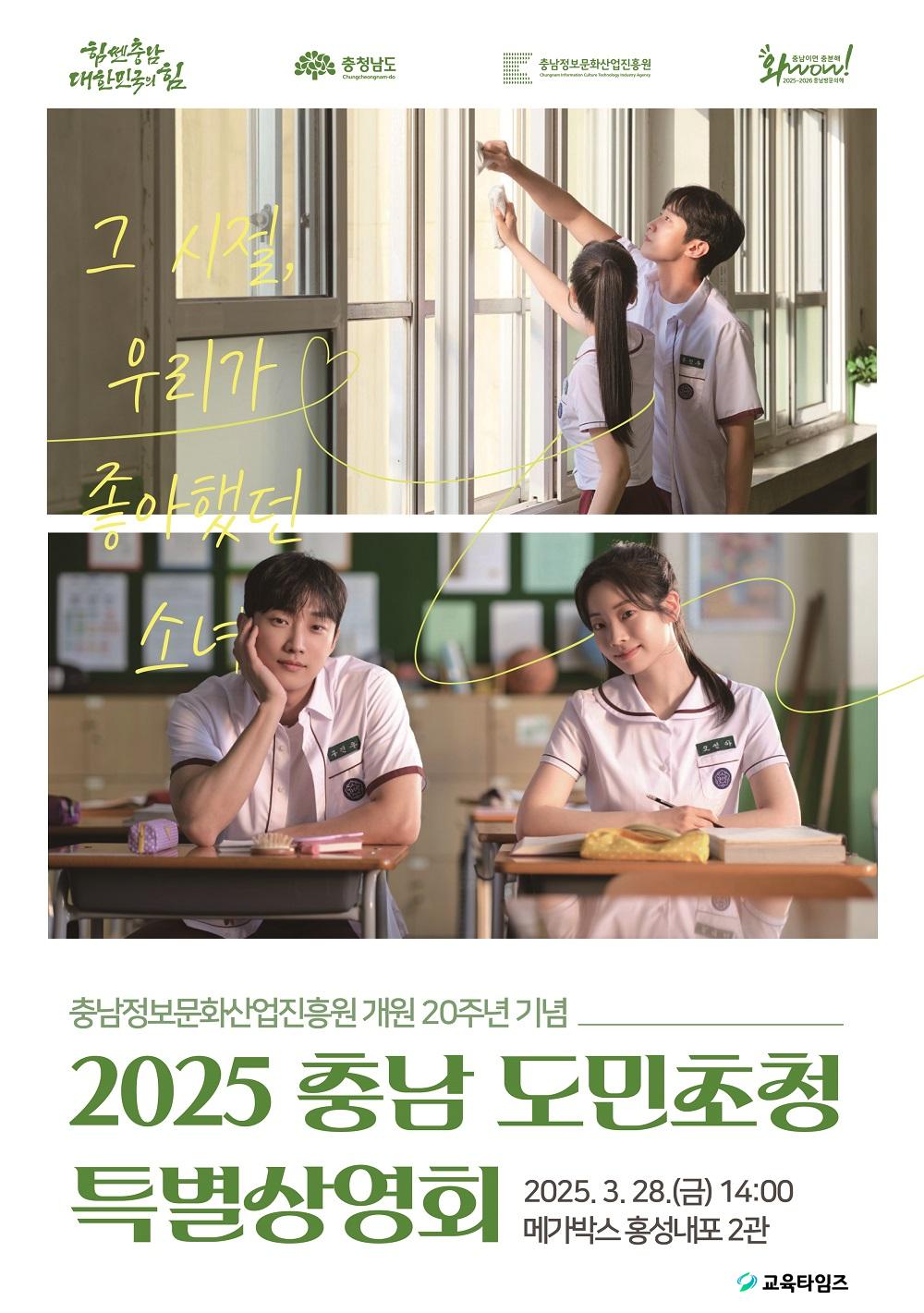 <±× ½ÃÀý, ¿ì¸®°¡ ÁÁ¾ÆÇß´ø ¼Ò³à>´Â µ¿¸íÀÇ ´ë¸¸ ¿µÈ¸¦ ¸®¸ÞÀÌÅ©ÇÑ ÀÛǰÀ¸·Î, ¹è¿ì Áø¿µ°ú ´ÙÇöÀÌ ÁÖ¿¬À» ¸Ã¾Æ ¿¿¬À» ÆîÃÆ´Ù. ÀÌ ÀÛǰÀº È«¼ºÀÇ ¡®È«¼º¿©°í¡¯, ¡®È«ÁÖ°í¡¯, ´çÁøÀÇ ¡®»ð±³È£ ³îÀ̵¿»ê¡¯, ¿¹»êÀÇ ¡®Á־ȱ³¡¯ µî Ãæ³²ÀÇ ´Ù¾çÇÑ ¸í¼ÒµéÀÌ ±ØÀÇ ÁÖ¿ä ¹è°æÀ¸·Î µîÀåÇØ, Ãæ³²ÀÇ ´Ù¾çÇÑ ¸Å·ÂÀ» ½ºÅ©¸°¿¡ ´ã¾Æ³Â´Ù. ÀÌó·³ Ãæ³²À» ¹è°æÀ¸·Î ÃÔ¿µÀÌ ÁøÇàµÈ Á¡À» ÀÎÁ¤¹Þ¾Æ, <±× ½ÃÀý, ¿ì¸®°¡ ÁÁ¾ÆÇß´ø ¼Ò³à>´Â ÁøÈï¿øÀÇ ¡®Ãæ³² ·ÎÄÉÀÌ¼Ç Àμ¾Æ¼ºê Áö¿ø»ç¾÷¡¯¿¡ ¼±Á¤µÇ¾ú´Ù. À̹ø Ưº°»ó¿µÈ¸´Â Âü°¡ ½Åû QRÄڵ带 ÅëÇØ »çÀü ½ÅûÀ» ÇÏ¸é ´©±¸³ª Âü¿©ÇÒ ¼ö ÀÖ´Ù.