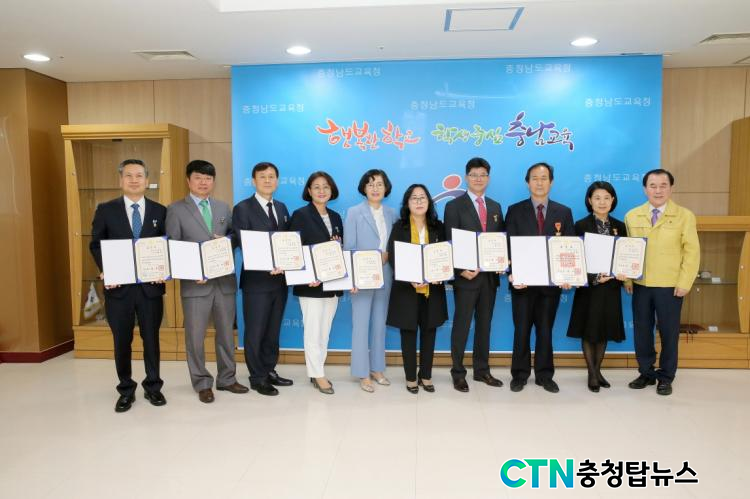 [ÃæÃ»±³À°½Å¹® = ÇѼºÁø ±âÀÚ] Ãæ³²±³À°Ã»(±³À°°¨ ±èÁöö)Àº 15ÀÏ Ã»»ç¿¡¼ Á¦39ȸ ½º½ÂÀÇ ³¯À» ¸Â¾Æ Á¤ºÎÆ÷»ó°ú Àå°üǥâÀÚ¿¡ ´ëÇÑ Àü¼ö½ÄÀ» °¡Á³´Ù. À̳¯ Àü¼ö½ÄÀº Äڷγª19 °ü·Ã Çà»ç ¿î¿µ Áöħ¿¡ µû¶ó ¼ö»óÀÚ 9¸íÀ» ´ë»óÀ¸·Î ¼Ò±Ô¸ð·Î ÁøÇàÇß´Ù.