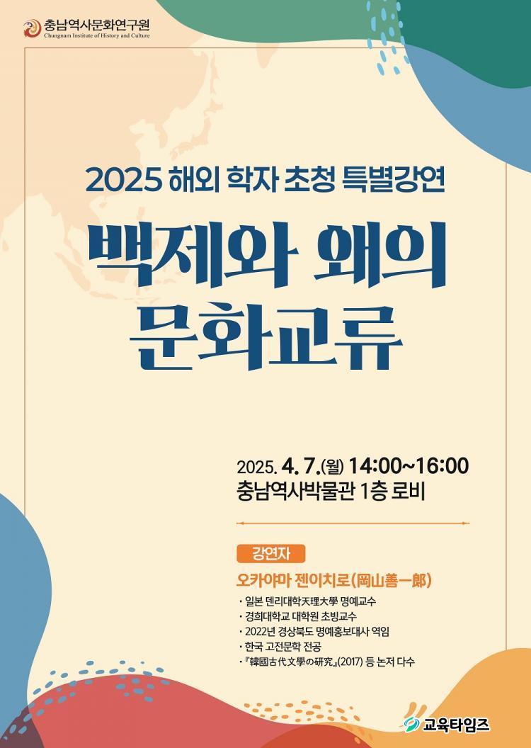 [±³À°Å¸ÀÓÁî/»çȸ] °¡µÎÈ£ ±âÀÚ = Ãæ³²¿ª»ç¹®È¿¬±¸¿ø(¿øÀå ±è³«Áß, ÀÌÇÏ ¿¬±¸¿ø)Àº ¿À´Â 4¿ù 7ÀÏ(¿ù) 14½Ã Ãæ³²¿ª»ç¹Ú¹°°ü¿¡¼ ÀϺ» ÇÐÀÚ ¿ÀÄ«¾ß¸¶ Á¨ÀÌÄ¡·Î(˪ߣà¼ìéÕÍ) ±³¼ö¸¦ ÃÊûÇÏ¿© ¡®¹éÁ¦¿Í ¿ÖÀÇ ¹®È±³·ù¡¯¶ó´Â ÁÖÁ¦·Î Ưº°°¿¬À» °³ÃÖÇÒ ¿¹Á¤À̶ó°í ¹àÇû´Ù.