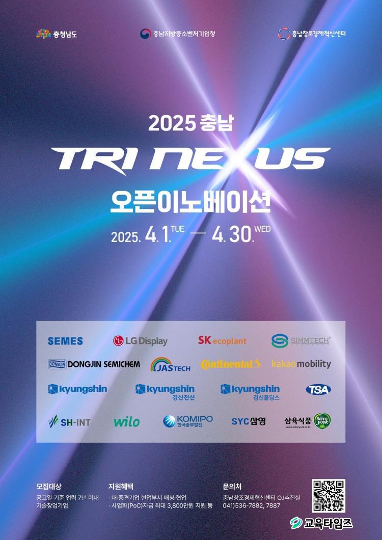 [±³À°Å¸ÀÓÁî/°æÁ¦] °¡µÎÈ£ ±âÀÚ = Ãæ³²Ã¢Á¶°æÁ¦Çõ½Å¼¾ÅÍ(ÀÌÇÏ Ãæ³²Ã¢°æ¼¾ÅÍ)´Â ´ë・Áß°ß±â¾÷°ú ½ºÅ¸Æ®¾÷ÀÇ µ¿¹Ý¼ºÀåÀ» À§ÇÑ '2025 Ãæ³² Tri Nexus ¿ÀÇÂÀ̳뺣À̼Ç'¿¡ Âü¿©ÇÒ ½ºÅ¸Æ®¾÷À» ¿À´Â 4¿ù 30ÀϱîÁö ¸ðÁýÇÑ´Ù°í 1ÀÏ ¹àÇû´Ù.
