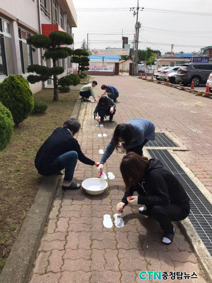 [ÃæÃ»±³À°½Å¹® = ÀÓÁ¾º¹ ±âÀÚ] ÀåÇ×Áß¾ÓÃʵîÇб³(±³Àå ¼½Â¹Ì)´Â Áö³ 5¿ù 14ÀÏ Èĵ¿ ÃâÀÔ¹® ¾Õ¿¡ Çлý ¹ß¿Ã¼Å© ´ë±â µ¿¼±À» Ç¥½ÃÇϱâ À§ÇÑ ¹ßÀÚ±¹ ¸ð¾ç ÆäÀÎÆ®Ä¥À» Çß´Ù.