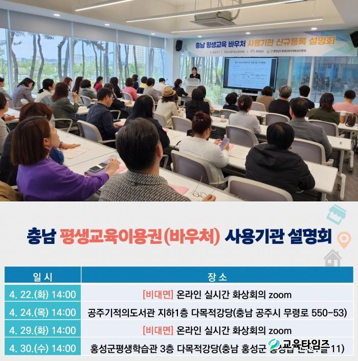 [±³À°Å¸ÀÓÁî/»çȸ] °¡µÎÈ£ ±âÀÚ = ÃæÃ»³²µµ¿Í Ãæ³²Æò»ý±³À°ÀÎÀçÀ°¼ºÁøÈï¿ø(¿øÀå ȲȯÅÃ)Àº Æò»ý±³À°ÀÌ¿ë±Ç Áö¿ø»ç¾÷¿¡ ´ëÇÑ ÀÌÇØµµ¸¦ ³ôÀÌ°í »ç¿ë±â°ü µî·ÏÀ» Ȱ¼ºÈÇϱâ À§ÇÏ¿© ¡°Ãæ³² Æò»ý±³À°ÀÌ¿ë±Ç »ç¿ë±â°ü µî·Ï ¼³¸íȸ¡±¸¦ 4¿ù 22ÀϺÎÅÍ 4¿ù 30ÀϱîÁö, ÃÑ 4Â÷·Ê¿¡ °ÉÃÄ ¿Â¡¤¿ÀÇÁ¶óÀÎÀ¸·Î ÁøÇàÇÑ´Ù.