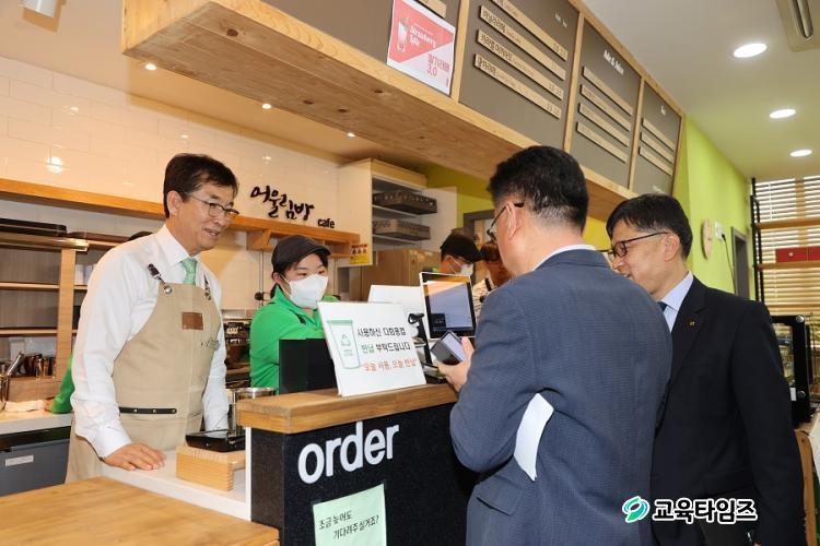 ¿ÀÈÄ¿¡´Â ÃæºÏ±³À°Ã» ³» À§Ä¡ÇÑ Àå¾ÖÇлý Á÷¾÷½Ç½ÀÀåÀÎ ¾î¿ï¸²¹æ Ä«Æä(ûÁÖÇý¿øÇб³ ¿î¿µ)¿¡¼ ÀÏÀÏ Á¡ÀåÀ» ¸Ã¾Æ ÇöÀå½Ç½À ÁßÀÎ Àå¾ÖÇлýµé°ú ÇÑ ¸í, ÇÑ ¸í ´«À» ¸ÂÃß°í °Ý·ÁÇÑ ÈÄ Ä«Æä¸¦ ãÀº ¼Õ´ÔµéÀ» ¹Ý°©°Ô ¸ÂÀÌÇß´Ù.