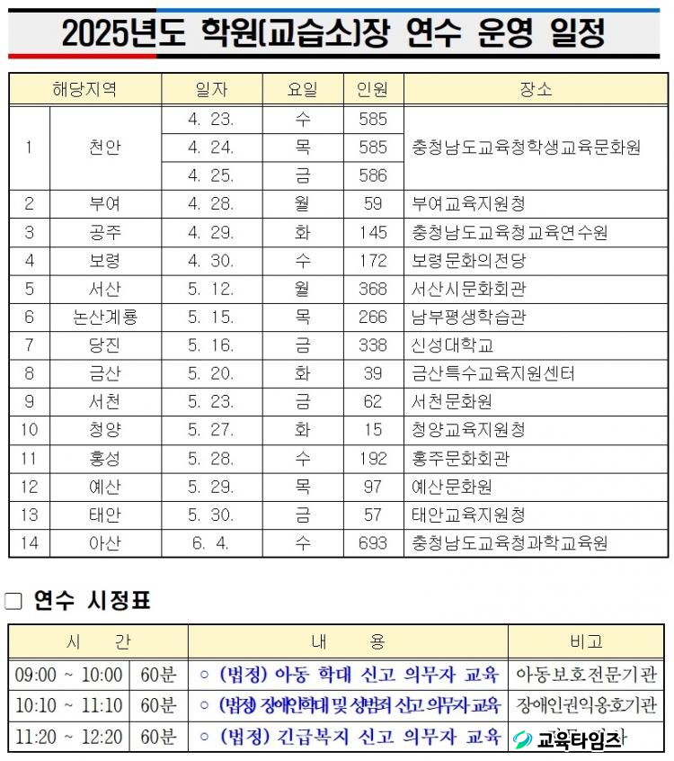 | 2025³âµµ Çпø(±³½À¼Ò)Àå ¿¬¼ö ¿î¿µ ÀÏÁ¤ ¹× ¿¬¼ö ½ÃÁ¤Ç¥ /ÀÚ·á=Ãæ³²±³À°Ã» Á¦°ø |