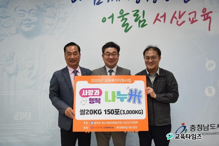 [±³À°Å¸ÀÓÁî/Ãæ³²±³À°] ÇѼºÁø ±âÀÚ = ÃæÃ»³²µµ ¼»ê±³À°Áö¿øÃ»(±³À°Àå ¼º±âµ¿)Àº 29ÀÏ ¼»ê±³À°Áö¿øÃ» ÁßȸÀǽǿ¡¼ ·Ôµ¥ÄɹÌÄ®(ÁÖ) ´ë»ê°øÀå(°øÀåÀå ±è±¤¿µ)À¸·ÎºÎÅÍ ½Ò(20kg) 150Æ÷´ë¸¦ Àü´Þ¹Þ¾Ò´Ù. Àü´ÞµÈ ½ÒÀº Áö¿ª ³» Àú¼Òµæ °¡Á¤ÀÇ ÃÊ¡¤Áß¡¤°í Çлý 150¸íÀÇ ÁýÀ¸·Î Àü´ÞµÉ ¿¹Á¤ÀÌ´Ù.
