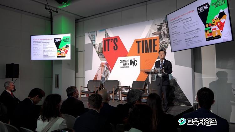 ±èÅÂÈì Ãæ³²Áö»ç°¡ Áö³ÇØ 9¿ù 23ÀÏ ¹Ì±¹ ´º¿å ±Û·¡½ºÇϿ콺¿¡¼ ¿¸° ¡®2030 ±Û·Î¹ú ¸Þź °¨Ãà Àü·« Åä·Ð¡¯¿¡ Âü¼®, ±âÁ¶¿¬¼³À» Çϰí ÀÖ´Ù. /»çÁø=Ãæ³²µµ Á¦°ø