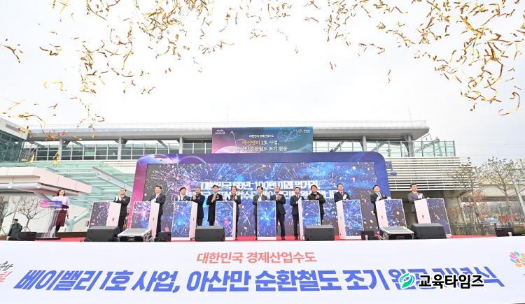 Áö³ÇØ 11¿ù 21ÀÏ Ãæ³² ¾Æ»ê ÀÎÁÖ¿ª¿¡¼ °³ÃÖÇÑ ¡®¾Æ»ê¸¸ ¼øÈ¯Ã¶µµ¡¯ Á¶±â ¿Ï°ø ±â³äÇà»ç ¸ð½À. ¾Æ»ê¸¸ ¼øÈ¯Ã¶µµ´Â ¹Î¼±8±â Èû½ëÃæ³²ÀÇ °ø¾àÀÌÀÚ º£À̹븮 1È£ »ç¾÷À¸·Î, ´ëÁ¤ºÎ ¿ªÁ¦¾ÈÀ» ÅëÇØ °³ÅëÀ» 11³â ¾Õ´ç°å´Ù. /»çÁø=Ãæ³²µµ Á¦°ø