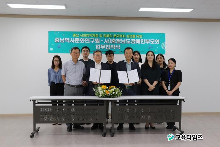 [±³À°Å¸ÀÓÁî/»çȸ] °¡µÎÈ£ ±âÀÚ = Ãæ³²¿ª»ç¹®È¿¬±¸¿ø(¿øÀå ±è³«Áß)Àº 19ÀÏ »ç)ÃæÃ»³²µµÀå¾ÖÀκθðȸ(ȸÀå ÀüÀçÇÏ)¿Í Ãæ³²Áö¿ª Àå¾ÖÀÎÀ» ºñ·ÔÇÑ »çȸÃë¾à°èÃþÀ» ´ë»óÀ¸·Î ¿ª»ç±³À°, ¹®ÈÀ¯»ê üÇè µî ¹®Èº¹Áö ¼ºñ½º È®´ë¸¦ À§ÇÑ »óÈ£Çù·Â ü°è¸¦ ±¸ÃàÇÏ°í »ó»ý ¹ßÀüÀ» À§ÇÑ ¾÷¹«Çù¾àÀ» ü°áÇß´Ù°í ¹àÇû´Ù.