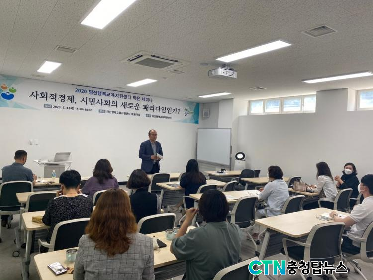 4ÀÏ Ã¹ ¼¼¹Ì³ª¿¡¼´Â »çȸÀû °æÁ¦¸¦ ´Ù·ð´Ù. Ãæ³²»çȸÀû°æÁ¦³×Æ®¿öÅ© ¹ÚÂù¹« ÀÌ»çÀåÀÌ ¹ßÁ¦Çϰí, Âü°¡ÀÚµéÀÌ ÇÔ²² Åä·ÐÇÏ´Â ¹æ½ÄÀ¸·Î, °ü³» ¸¶À»±³À°¿¬±¸È¸¿Í ½Ã¹ÎÇнÀ¸ðÀÓ È¸¿øµéÀÌ Âü¼®ÇØ »ý°¢°ú ÀǰßÀ» ´³´Ù.