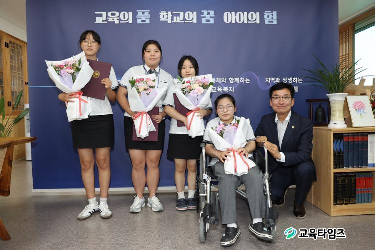 À±°Ç¿µ ±³À°°¨ÀÌ ¼ö»óÀÚµé°ú ±â³äÃÔ¿µÀ» Çß´Ù. /»çÁø=ÃæºÏ±³À°Ã» Á¦°ø