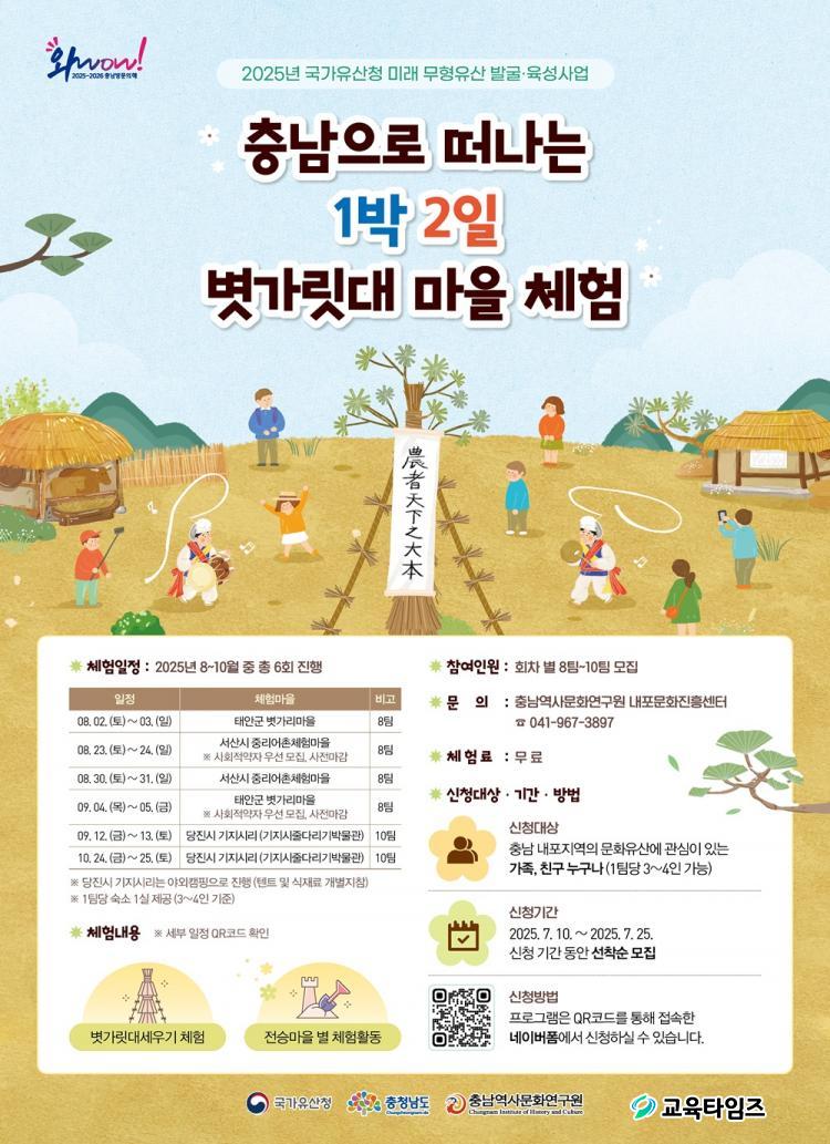 [±³À°Å¸ÀÓÁî/»çȸ] °¡µÎÈ£ ±âÀÚ = Ãæ³²¿ª»ç¹®È¿¬±¸¿øÀº ±¹°¡ ¹Ì·¡¹«ÇüÀ¯»êÀÎ 「Ãæ³²ÀÇ º²°¡¸´´ë¼¼¿ì±â」¸¦ ¾Ë¸®±â À§ÇÏ¿© ¿ÃÇØ 8~10¿ù µ¿¾È¡®Ãæ³²À¸·Î ¶°³ª´Â 1¹Ú2ÀÏ º²°¡¸´´ë ¸¶À» üÇ衯Âü°¡ÀÚ¸¦ ¸ðÁýÇÑ´Ù.