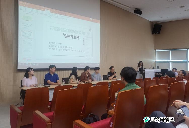 À̾î õ¾È¿ùºÀ°íµîÇб³ ÃÖÁö¼ö ±³»ç´Â 'Â÷º°°ú Çø¿À¸¦ ³Ñ¾î, °ø°¨À¸·Î Åë(÷×)ÇÏ´Â Áú¹® ¼ö¾÷'À» ÅëÇØ À±¸® ±³À°ÀÇ ½ÉÈµÈ Á¢±Ù¹ýÀ» °øÀ¯ÇßÀ¸¸ç, ¸¶Áö¸·À¸·Î À̼ø½Å°íµîÇб³ ±è¼±¸í ±³»ç´Â '½½±â·Î¿î °¥µî °ü¸® ÇÁ·ÎÁ§Æ® ¼ö¾÷'À» À¶ÇÕ ¼ö¾÷ »ç·Ê·Î ¼Ò°³Çϸç, ´Ù¾çÇÑ Áú¹®À» ÅëÇØ Âü¿©ÀÚµéÀÇ È°¹ßÇÑ ¼ÒÅëÀ» À̲ø¾ú´Ù.