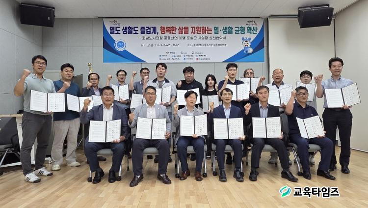 [±³À°Å¸ÀÓÁî/Ãæ³²] °¡µÎÈ£ ±âÀÚ = Ãæ³²µµ´Â 16ÀÏ È«¼º±º 8°³ »ç¾÷ÀåÀÌ Ãæ³²³ë»ç¹ÎÁ¤°øµ¿¼±¾ðÀÇ ±¸Ã¼ÀûÀÎ ÀÌÇàÀ» À§ÇØ ½Çõ Çù¾àÀ» ü°áÇϰí, ÀÏ¡¤»ýȰ ±ÕÇü È®»ê¿¡ ÈûÀ» ÇÕÃÄ ³ª°¡±â·Î Çß´Ù.