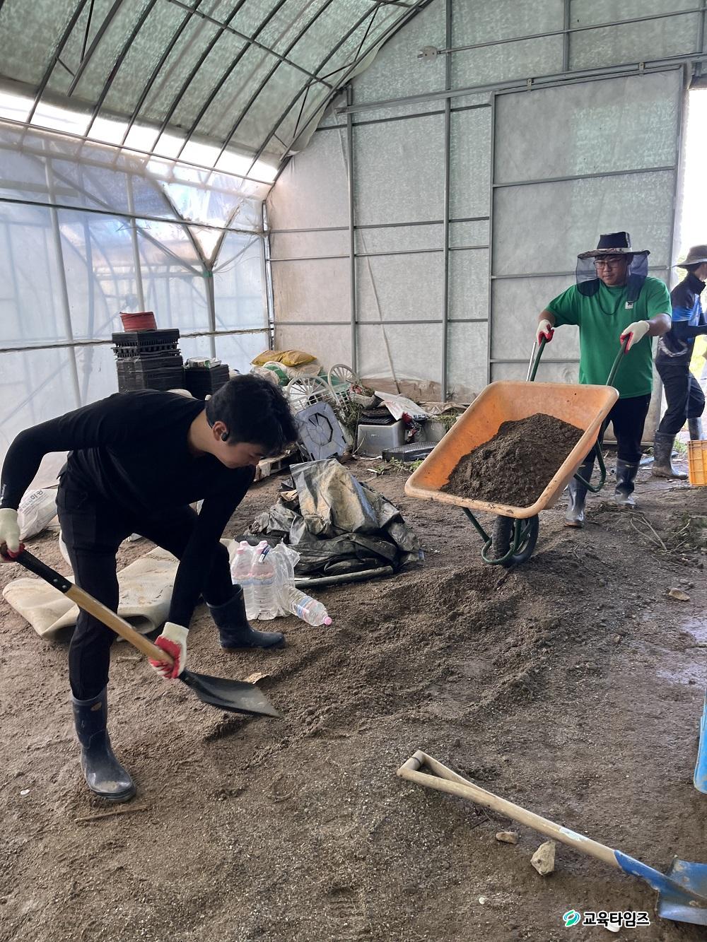 À̳¯ ºÀ»ç¿¡ Âü¿©ÇÑ È¸¿øµéÀº ħ¼ö·Î ÈÑ¼ÕµÈ ³ó¾÷½Ã¼³À» Á¤ºñÇϰí, ¾²·¹±â¿Í Åä»ç Á¦°Å, ³óÀÛ¹° ÀÜÇØ ¼ö°Å µî º¹±¸ ÀÛ¾÷¿¡ ÈûÀ» º¸ÅÉ´Ù.