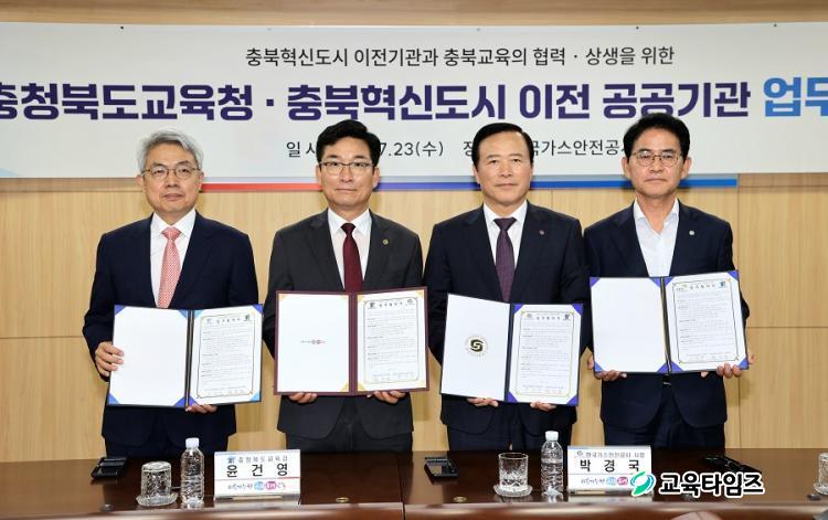 ÃæÃ»ºÏµµ±³À°Ã»(±³À°°¨ À±°Ç¿µ), Çѱ¹°¡½º¾ÈÀü°ø»ç(»çÀå ¹Ú°æ±¹), Çѱ¹°í¿ëÁ¤º¸¿ø(¿øÀå ÀÌâ¼ö), Çѱ¹±³À°°³¹ß¿ø(¿øÀå °í¿µ¼±)ÀÌ ¾÷¹«Çù¾àÀ» ü°áÇÏ°í ±â³äÃÔ¿µÀ» Çϰí ÀÖ´Ù. /»çÁø=ÃæºÏ±³À°Ã» Á¦°ø
