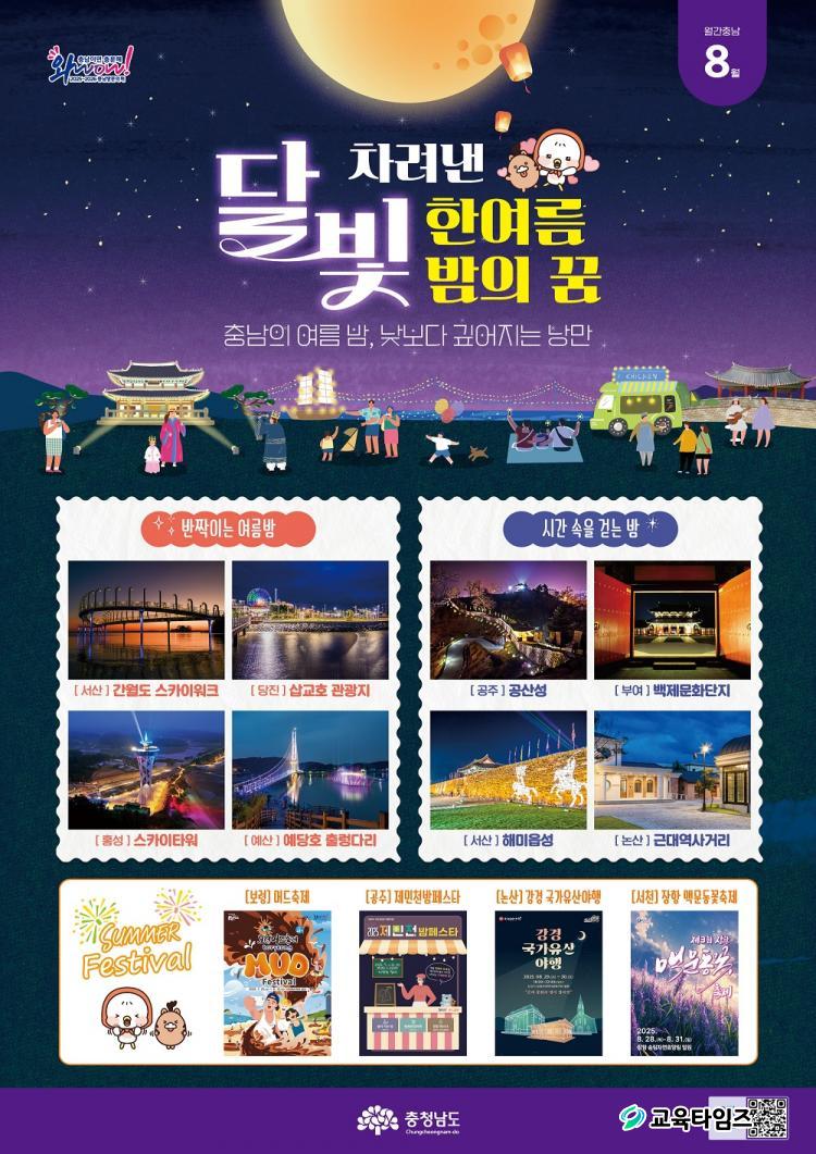 8¿ù ÁÖÁ¦´Â ¡®´Þºû Â÷·Á³½ ÇÑ¿©¸§ ¹ãÀÇ ²Þ¡¯À¸·Î, ³·º¸´Ù ´õ ³¶¸¸ÀûÀÎ Ãæ³²ÀÇ ¿©¸§¹ãÀ» Áñ±æ ¼ö ÀÖ´Â ¾ß°£°ü±¤ ¸í¼Ò¿Í 8¿ù¿¡ ¿­¸®´Â ÃàÁ¦µéÀÌ ¾î¿ì·¯Áø µµ³» ½Ã±º °ü±¤Áö¸¦ ¼Ò°³ÇÑ´Ù.