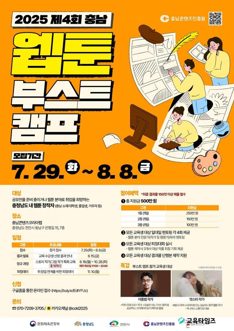 [±³À°Å¸ÀÓÁî/»çȸ] °¡µÎÈ£ ±âÀÚ = Ãæ³²ÄÜÅÙÃ÷ÁøÈï¿ø(¿øÀå ±è°î¹Ì, ÀÌÇÏ ÁøÈï¿ø)Àº Ãæ³²Áö¿ª À¥Å÷ âÀÛÀÚ ¿ª·® °È¸¦ À§ÇÑ ¡º2025 Á¦4ȸ Ãæ³² À¥Å÷ ºÎ½ºÆ® Ä·ÇÁ¡» Âü°¡ÀÚ¸¦ ¿À´Â 7¿ù 29ÀÏ(È)ºÎÅÍ 8¿ù 8ÀÏ(±Ý)±îÁö 11Àϰ£ ¸ðÁýÇÑ´Ù°í ¹àÇû´Ù.