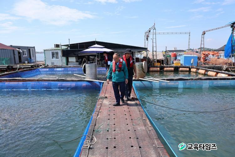 Á¶µ¿½Ä ÀÇÀåÀº ¹ÚÅ¿í ⸮ ¾îÃ̰èÀå°ú ÇÔ²² ¾îÁ¾ÀÇ »çÀ° »óÅÂ¿Í °í¼ö¿Â¿¡ ´ëºñÇϱâ À§ÇØ ¼³Ä¡µÈ »ê¼Ò °ø±Þ±â µîÀ» Á¡°ËÇϰí, ²ú´Â ¹Ù´Ù¿¡ ¼ÓÀ» Å¿ì´Â ¾î¾÷ÀεéÀ» À§·ÎÇß´Ù.