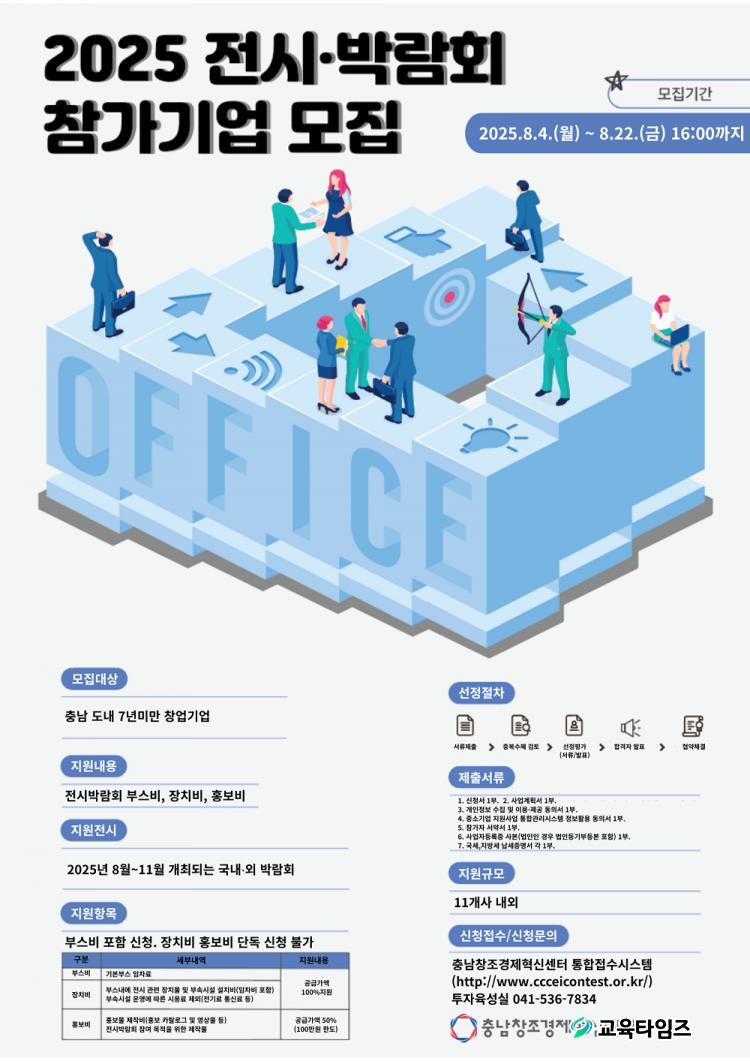 [±³À°Å¸ÀÓÁî/°æÁ¦] °¡µÎÈ£ ±âÀÚ = (Àç)Ãæ³²Ã¢Á¶°æÁ¦Çõ½Å¼¾ÅÍ(ÀÌÇÏ Ãæ³²Çõ½Å¼¾ÅÍ)´Â Ãæ³² µµ³» 7³â ¹Ì¸¸ â¾÷±â¾÷À» ´ë»óÀ¸·Î ¡®2025³â Àü½Ã¡¤¹Ú¶÷ȸ Âü°¡±â¾÷ Áö¿ø»ç¾÷¡¯ Âü°¡±â¾÷À» ¿À´Â 8¿ù 4ÀϺÎÅÍ 8¿ù 22ÀϱîÁö ¸ðÁýÇÑ´Ù°í ¹àÇû´Ù.