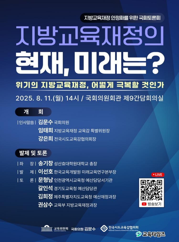 À̹ø Åä·Ðȸ´Â ±è¹®¼ö ±¹È¸ÀÇ¿ø°ú Àü±¹½Ãµµ±³À°°¨ÇùÀÇȸ Áö¹æ±³À°ÀçÁ¤ ±³À°°¨ Ưº°À§¿øÈ¸°¡ °øµ¿ ÁÖÃÖÇϸç, ±¹È¸ ±³À°À§¿øÈ¸ ±è¹®¼ö ÀÇ¿ø(Àü³² ¼øÃµ½Ã±¤¾ç½Ã°î¼º±º±¸·Ê±º°©),ÀÓÅÂÈñ Áö¹æ±³À°ÀçÁ¤ ±³À°°¨ Ưº°À§¿øÀå(°æ±âµµ±³À°°¨), °ÀºÈñ Àü±¹½Ãµµ±³À°°¨ÇùÀÇȸÀå(´ë±¸±³À°°¨), ½Å°æÈ£ °¿øµµ±³À°°¨, À±°Ç¿µ ÃæºÏ±³À°°¨, ±è±¤¼ö Á¦ÁÖ±³À°°¨ µî ±³À°°è ÀλçµéÀÌ Âü¼®ÇÑ´Ù.