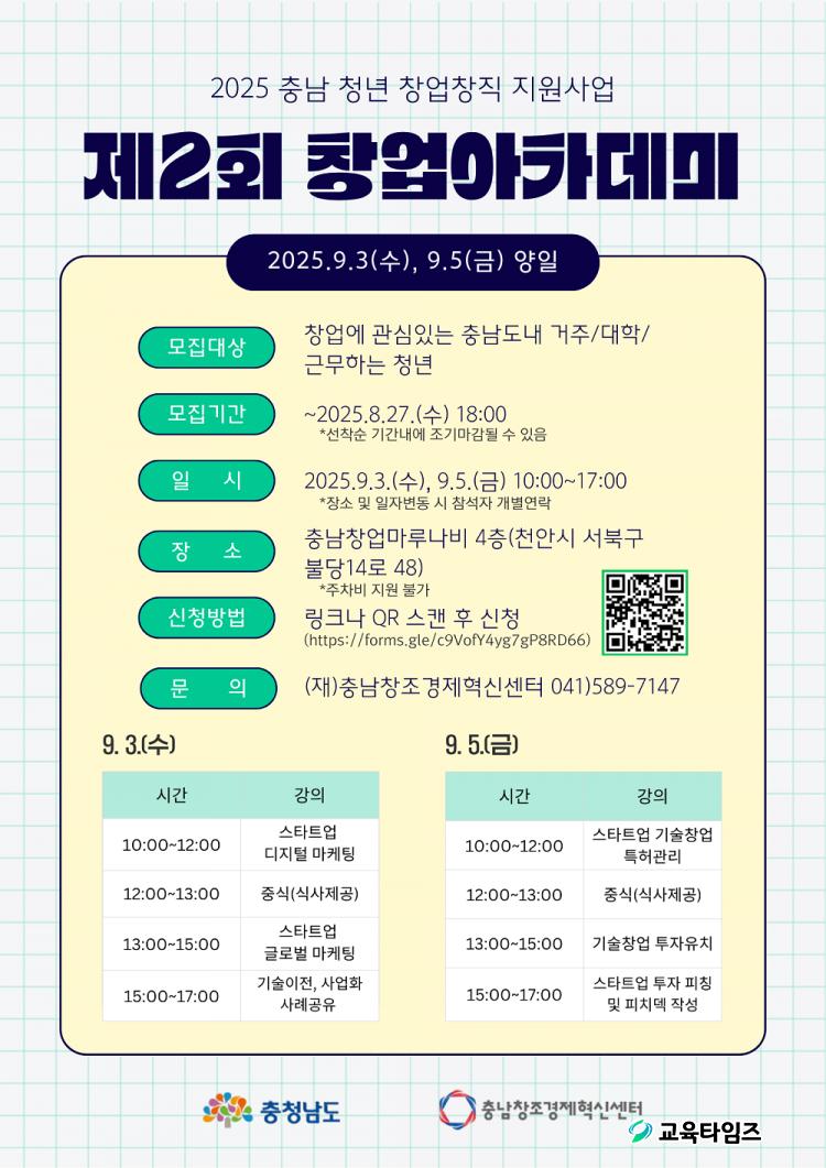 [±³À°Å¸ÀÓÁî/°æÁ¦] °¡µÎÈ£ ±âÀÚ = (Àç)Ãæ³²Ã¢Á¶°æÁ¦Çõ½Å¼¾ÅÍ(ÀÌÇÏ Ãæ³²Çõ½Å¼¾ÅÍ)°¡ µµ³» û³â¿¡°Ô â¾÷¿¡ °üÇÑ ±³À°À» Á¦°øÇÏ´Â ¡®2025³â Ãæ³² â¾÷¡¤Ã¢Á÷ Áö¿ø»ç¾÷ Á¦2ȸ â¾÷¾ÆÄ«µ¥¹Ì¡¯ Âü°¡ÀÚ¸¦ ÀÌ´Þ 27ÀϱîÁö ¸ðÁýÇÑ´Ù°í 11ÀÏ ¹àÇû´Ù.