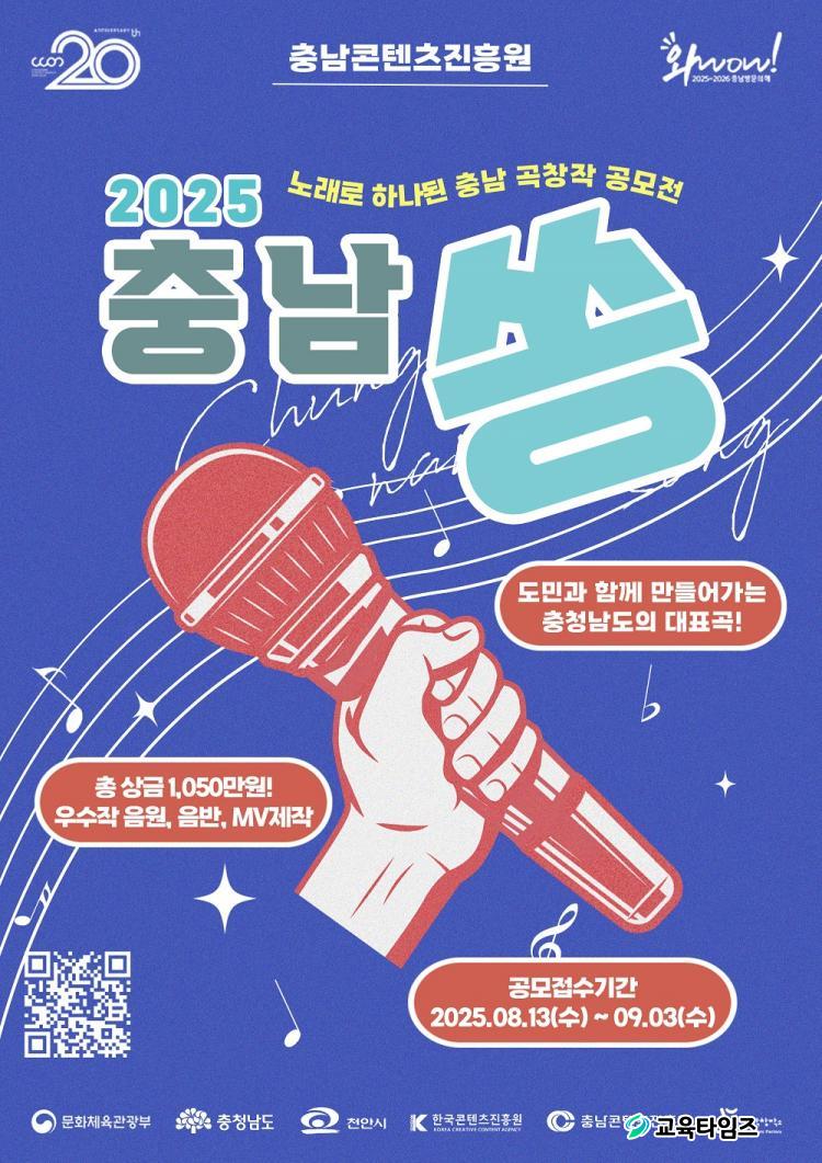 [±³À°Å¸ÀÓÁî/»çȸ] °¡µÎÈ£ ±âÀÚ = Ãæ³²ÄÜÅÙÃ÷ÁøÈï¿ø(¿øÀå ±è°î¹Ì, ÀÌÇÏ ÁøÈï¿ø)Àº ÃæÃ»³²µµÀÇ Á¤Ã¼¼º°ú °¨¼ºÀ» ´ãÀº âÀÛ À½¾ÇÀ» ¹ß±¼¡¤È®»êÇϱâ À§ÇÑ ¡¸Ãæ³²½ö(song) °ø¸ðÀü¡¹À» 2025³â 8¿ù 13ÀÏ(¼ö)ºÎÅÍ 09¿ù 03ÀÏ(¼ö)±îÁö ¸ðÁýÇÑ´Ù°í ¹àÇû´Ù.