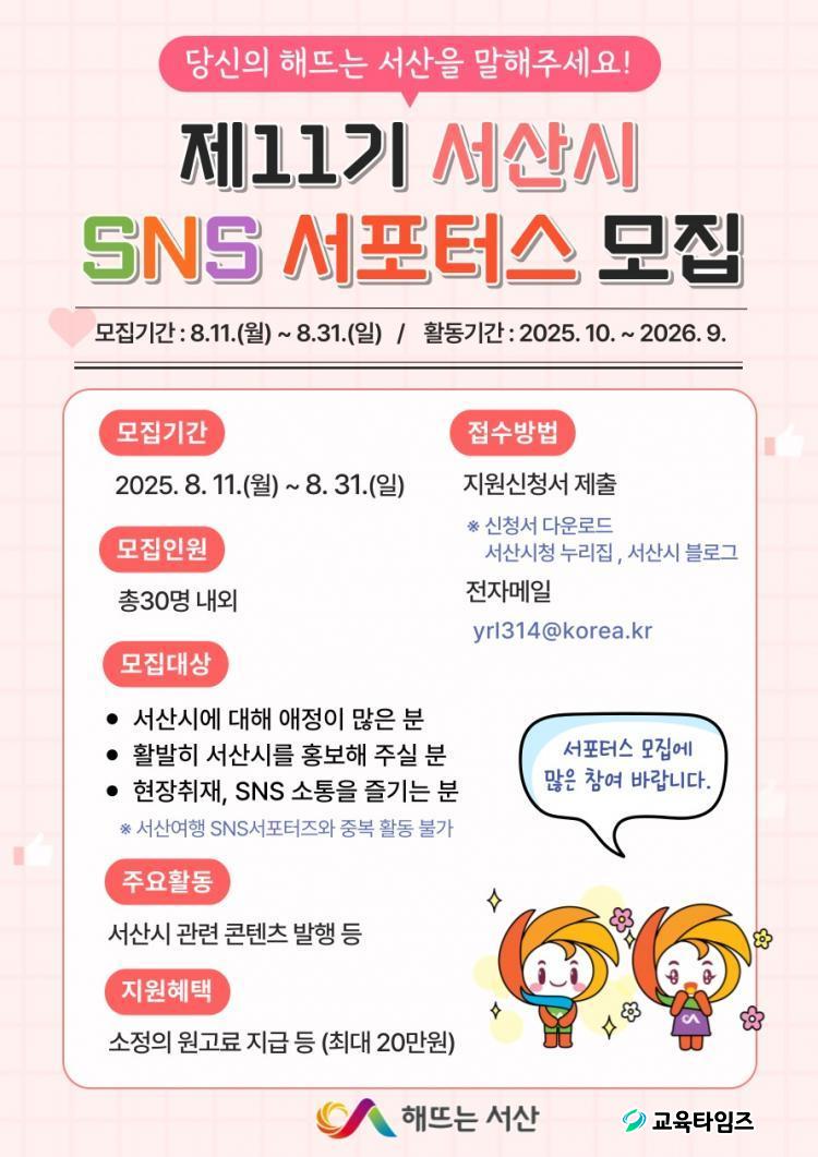 ½Ã´Â Á¦11±â ¼»ê½Ã SNS ¼Æ÷Åͽº·Î 30¸í ³»¿Ü¸¦ ¸ðÁýÇÒ ¿¹Á¤ÀÌ´Ù.