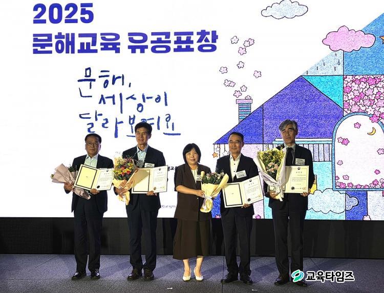 ȲÇöÅà ¿øÀå(¿ÞÂÊ¿¡¼ µÎ ¹øÂ°)ÀÌ 2025³â ¹®Çر³À° ÄÁÆÛ·±½º¿¡¼ ±³À°ºÎÀå°ü ǥâÀ» ¼ö»óÇÏ¿´´Ù. /»çÁø=Ãæ³²Æò»ý±³À°ÀÎÀçÀ°¼ºÁøÈï¿ø Á¦°ø