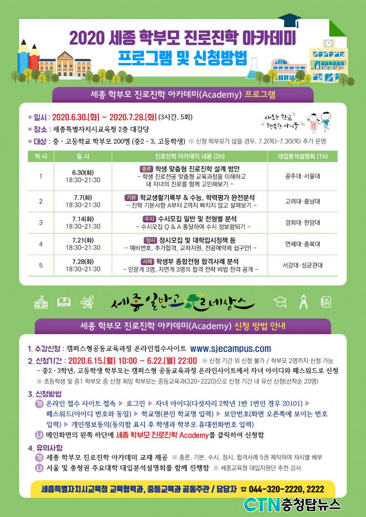 [ÃæÃ»±³À°½Å¹® = Á¤¹ÎÁØ ±âÀÚ] ¼¼Á¾Æ¯º°ÀÚÄ¡½Ã±³À°Ã»Àº ¿À´Â 30ÀϺÎÅÍ 7¿ù 28ÀϱîÁö ¸ÅÁÖ È¿äÀÏ¿¡ û»ç 2Ãþ ´ë°´ç¿¡¼ Çкθ𸦠´ë»óÀ¸·Î '2020 ¼¼Á¾ Çкθð Áø·ÎÁøÇÐ ¾ÆÄ«µ¥¹Ì'¸¦ ¿î¿µÇÑ´Ù.