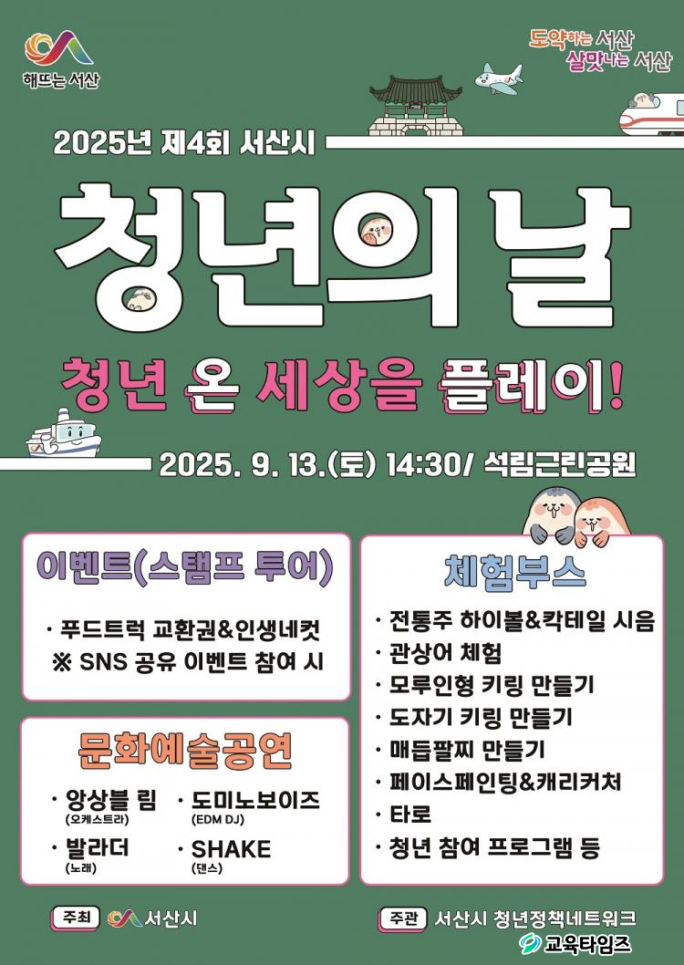 - ¿À´Â 9¿ù 13ÀÏ, Á¦4ȸ ¼»ê½Ã û³âÀÇ ³¯ 'û³â ¿Â ¼¼»óÀ» Ç÷¹ÀÌ!'