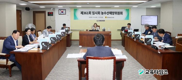 [±³À°Å¸ÀÓÁî/Á¤Ä¡] °¡µÎÈ£ ±âÀÚ = Ãæ³²µµÀÇȸ ³ó¼ö»êÇØ¾çÀ§¿øÈ¸(À§¿øÀå ÀÌ¿¬Èñ)´Â 5ÀÏ Á¦361ȸ ÀÓ½Ãȸ Á¦2Â÷ ȸÀÇ¿¡¼ Ãæ³²µµ ³óÃà»ê±¹‧ÇØ¾ç¼ö»ê±¹ ¼Ò°ü 2025³â Ãß°¡°æÁ¤¿¹»ê¾È, Á¶·Ê¾È µî°ú ³óÃà»ê±¹ 2025³âµµ Ã⿬°èȹ¾ÈÀ» ½É»çÇß´Ù.