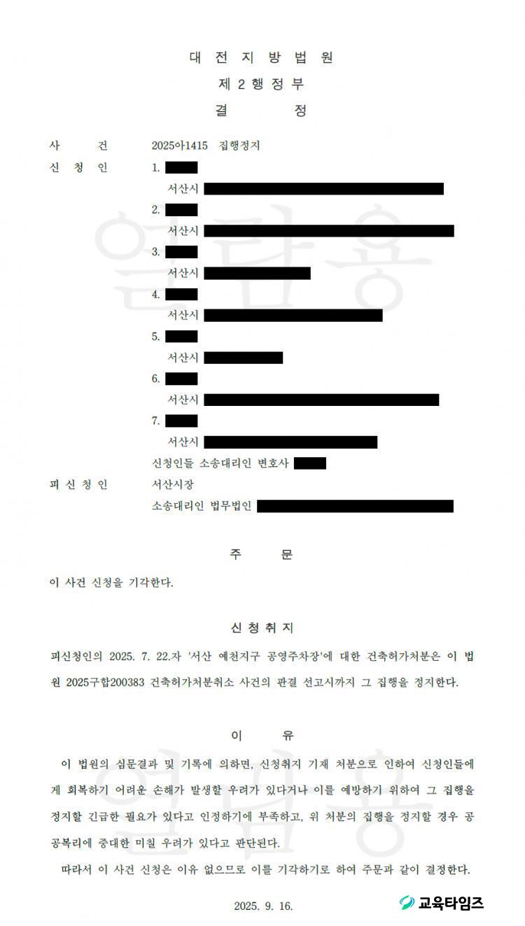 Áö³ 16ÀÏ ´ëÀüÁö¹æ¹ý¿øÀº ÇØ´ç »ç¾÷¿¡ ´ëÇÑ ÁýÇàÁ¤Áö ½ÅûÀ» ±â°¢Çϸç, »ç¾÷ ÃßÁø¿¡ ¹®Á¦°¡ ¾øÀ½À» ºÐ¸íÈ÷ Çß´Ù.