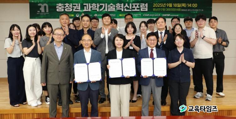 ÀüÈñ°æ ¿øÀåÀº ¡°´ëÀü¡¤Ãæ³²¡¤ÃæºÏÀº °¢ Áö¿ªÀÇ ¶Ù¾î³ ¿¬±¸ ±â¼ú°ú ¿ª·®À» º¸À¯Çϰí ÀÖ´Â ¸¸Å, À̸¦ ¼·Î °øÀ¯Çϰí Çù¾÷ÇÑ´Ù¸é ÃæÃ»±ÇÀ» ³Ñ¾î ´ëÇѹα¹À» °ßÀÎÇÏ´Â °úÇбâ¼ú Çõ½ÅÀÇ Áß½ÉÃàÀÌ µÉ °Í¡±À̶ó¸ç ¡°À̹ø Çù¾àÀ» °è±â·Î ÃæÃ»±ÇÀÇ »ó»ý°ú Çù·Â¿¡ ±â¹ÝÇÑ °úÇбâ¼ú ¼º°ú âÃ⠸𵨠°³¹ß µî ¹Ì·¡ °úÇбâ¼ú Çõ½ÅÀÇ ¸ð¹üÀÌ µÇ±æ ±â´ëÇÑ´Ù¡±°í ¸»Çß´Ù.