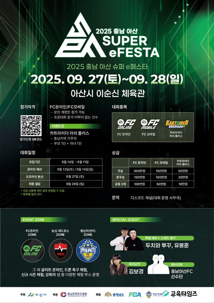 Ãæ³² ¾Æ»ê ½´ÆÛ eÆä½ºÅ¸´Â Àαâ À̽ºÆ÷Ã÷ Á¾¸ñÀÎ FC ¿Â¶óÀÎ(°³ÀÎÀü, PC), FC ¸ð¹ÙÀÏ(°³ÀÎÀü, ¸ð¹ÙÀÏ) µÎ Á¾¸ñ°ú īƮ¶óÀÌ´õ ·¯½¬ Ç÷¯½º(2ÀÎ 1ÆÀ, ¸ð¹ÙÀÏ)À» À̺¥Æ® Á¾¸ñÀ¸·Î Æí¼ºÇÏ¿© ¿î¿µµÈ´Ù. ¶ÇÇÑ, 27ÀÏ¿¡´Â K¸®±×2 Ãæ³²¾Æ»êFCÀÇ È¨°æ±âµµ ¿¹Á¤µÇ¾îÀÖ¾î Ã౸¸¦ ¸Å°³·Î ÇÏ¿© ÀüÅë ½ºÆ÷Ã÷¿Í À̽ºÆ÷Ã÷°¡ °áÇÕÇÑ ³²³à³ë¼Ò ´©±¸³ª Áñ±æ ¼ö ÀÖ´Â ÃàÁ¦ÀÇ ºÐÀ§±â¸¦ ÇÑ Ãþ °íÁ¶½Ãų Àü¸ÁÀÌ´Ù.