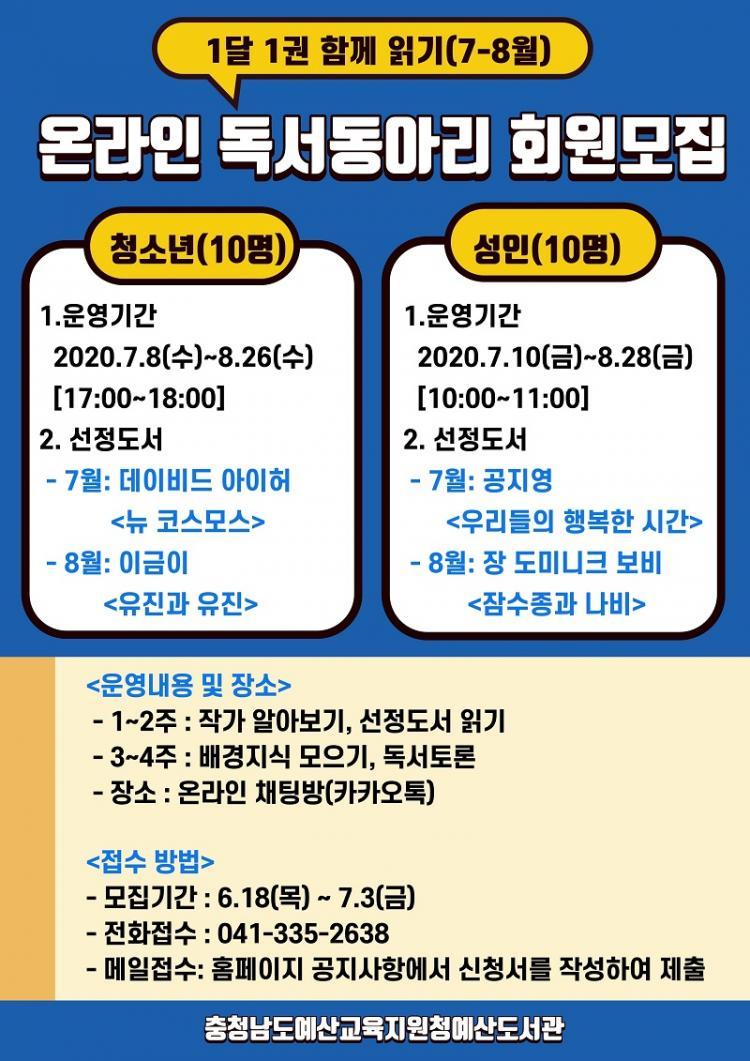 [ÃæÃ»±³À°½Å¹® = ÃÖ¿ë°ü ±âÀÚ] À̸í¼÷ ÃæÃ»³²µµ¿¹»ê±³À°Áö¿øÃ»¿¹»êµµ¼°üÀåÀº Äڷγª19 ´ëÀÀ »ýȰ ¼Ó °Å¸®µÎ±â¿¡ µ¿ÂüÇϰí, Áö¿ªÁֹΡ¤Ã»¼Ò³âÀÇ µ¶¼ÁøÈïÀ» À§ÇØ 7-8¿ù¿¡ ¿î¿µÇÏ´Â ¿Â¶óÀÎ µ¶¼µ¿¾Æ¸®¡¸1´Þ 1±Ç ÇÔ²² Àб⡹Âü¿©ÀÚ¸¦ 6¿ù 22ÀϺÎÅÍ 7¿ù 3ÀϱîÁö ¸ðÁýÇÑ´Ù.